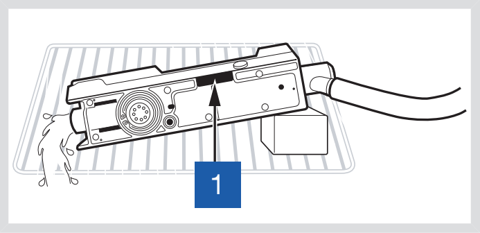 在水中 (<35°C/95°F) 徹底漂洗各部件。讓水從各部件中流過,以除去有機(jī)物質(zhì)(如血液和其它殘留)。
