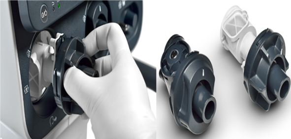 2.呼氣封閉盒可以在不同的 SERVO-i/s呼吸機(jī)系統(tǒng)之間互換使用。將清潔的呼氣封閉盒連接到呼吸機(jī)后,呼吸機(jī)便可立即使用。
