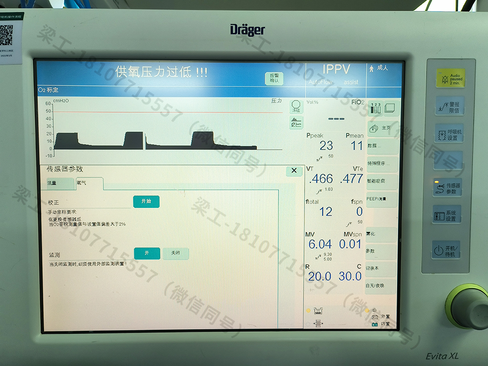 接好氧氣管和空氣管,然后開(kāi)機(jī)到正常工作頁(yè)面