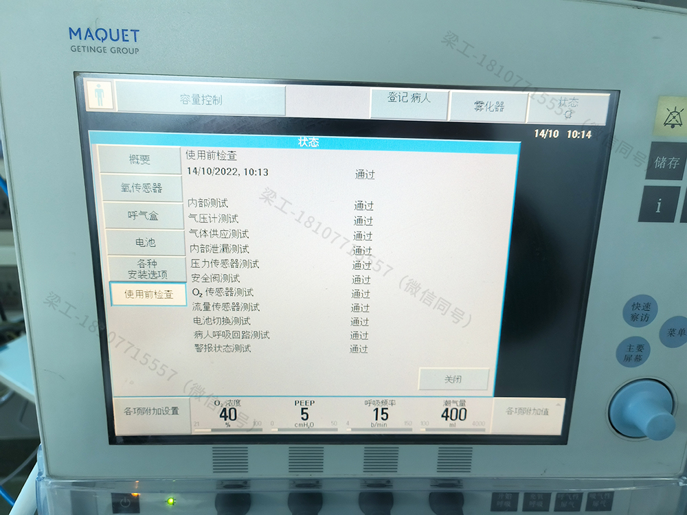 1、使用前檢查 呼吸機(jī)和患者連接前應(yīng)始終執(zhí)行一次使用前檢查,該項(xiàng)檢查可以說是呼吸機(jī)的一項(xiàng)全身檢查,一共 11 個(gè)測(cè)試項(xiàng)目。 包括:(內(nèi)部測(cè)試,氣壓計(jì)測(cè)試,氣體供應(yīng)測(cè)試,內(nèi)部泄漏測(cè)試,壓力傳感器測(cè)試,安全閥測(cè)試,氧氣傳感器測(cè)試,流量傳感器測(cè)試,電池切換測(cè)試,患者呼吸回路測(cè)試,報(bào)警狀態(tài)測(cè)試)。 通過這些測(cè)試能更快地排除機(jī)器的故障。 注意:測(cè)試時(shí)僅能使用邁柯唯的藍(lán)色測(cè)試管。 2、機(jī)器外觀保養(yǎng) 觀察呼吸機(jī)的外觀是否有損壞,檢查電源和控制電纜的連接是否損壞,可以用干凈的軟布清潔呼吸機(jī)的外表面,每日或隔日1次都可以,必要時(shí)可以用乙二醇(70%)或異丙醇(70%)去污,清潔時(shí)應(yīng)注意清潔液流入機(jī)器內(nèi)造成故障。 3、用戶界面檢查 打開機(jī)器,進(jìn)入維修界面進(jìn)行測(cè)試,包括觸摸屏的可讀性、亮度、透明度及表面,觸摸屏的功能,主旋轉(zhuǎn)鈕,直接控制按鈕,薄膜按鈕,該項(xiàng)測(cè)試按照提示操作即可完成。 4、氧電池的維護(hù) 正常情況下,氧電池的工作時(shí)間約為5000h,每年至少做一次預(yù)防性維護(hù)。 執(zhí)行使用前檢查,可以檢測(cè)氧電池的狀況,也可以通過菜單選項(xiàng)查看氧電池的狀態(tài)。 氧電池剩余電量<10%,就應(yīng)更換氧電池,更換時(shí)應(yīng)確保新橡膠密封墊完好無損,然后用力將新濾菌器放入其內(nèi)。 5、內(nèi)置電池檢查 通過“電池狀態(tài)窗口”可查看詳細(xì)的電池狀態(tài)信息。 當(dāng)從電池供電操作時(shí),電池剩余時(shí)間顯示為紅色時(shí),表示電池模塊剩下非常少的操作時(shí)間,并且必須更換電池模塊。 當(dāng)呼吸機(jī)處于不用狀態(tài)時(shí),應(yīng)將呼吸機(jī)與電源連接,以確保電池充滿電。 為保證可靠的電池后背供電,應(yīng)始終安裝兩個(gè)完全充滿電的電池模塊。 注意:后背蓄電池模塊必須每30個(gè)月更換一次。 6、呼氣盒的維護(hù)保養(yǎng) 關(guān)機(jī)狀態(tài)下,取出呼氣盒,用蒸餾水沖洗,水必須能自由地流經(jīng)呼氣盒,水流流速<10L/min,可以用70%的乙二醇或異丙醇浸泡大約30min后用蒸餾水沖洗呼氣盒,在水中沖洗去除殘留的消毒劑,水必須從各部件自由地流過,水流流速<10L/min,在室溫下自然干燥24~48h,換了新的呼出氣體模塊后,一定要通過自檢方能使用。 7、主機(jī)過濾網(wǎng) 一般采用常規(guī)保養(yǎng),具體方法是取出過濾網(wǎng),用清水沖洗表面表面灰塵,自然晾干后裝回或者用吸塵器清理灰塵,然后裝回原位。 清洗頻率:一般每1、2周清洗一次。 8、保養(yǎng)套件的更換 每年或每5000h應(yīng)更換兩個(gè)氣體模塊過濾器、吸氣壓力傳感器 過濾器、氧傳感器細(xì)菌過濾器和兩個(gè)氣體模塊的噴嘴。 定期更換保養(yǎng)套件能有效避免一些故障的發(fā)生。
